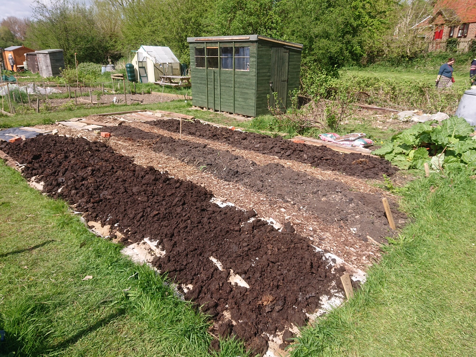 In 2023, New Leaf received confirmation that an allotment plot had become available. We were able to choose a blank canvas of a plot, which, with a bit of landscaping and plenty of organic matter added, we have now been able to cultivate.