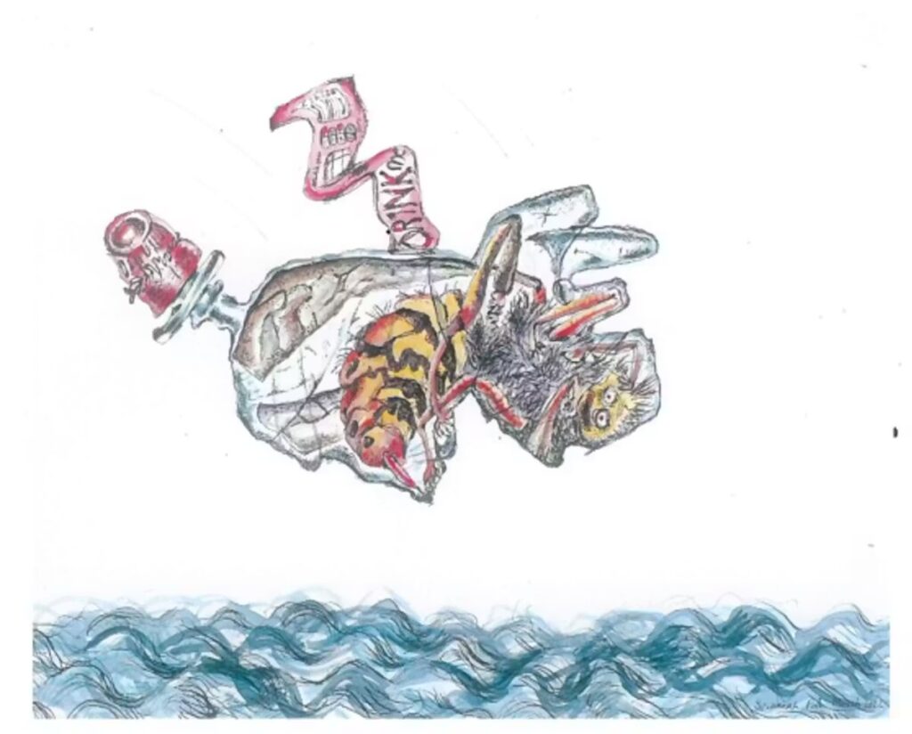 Our plastics researchers collaborated with a professional artist, Susannah Pal. After interviews and laboratory visits, she produced a series of tragicomic (humorously sad) seascapes. In addition to running public exhibitions in London and Southampton, Pal held an online and in-person drawing workshop for the public.
